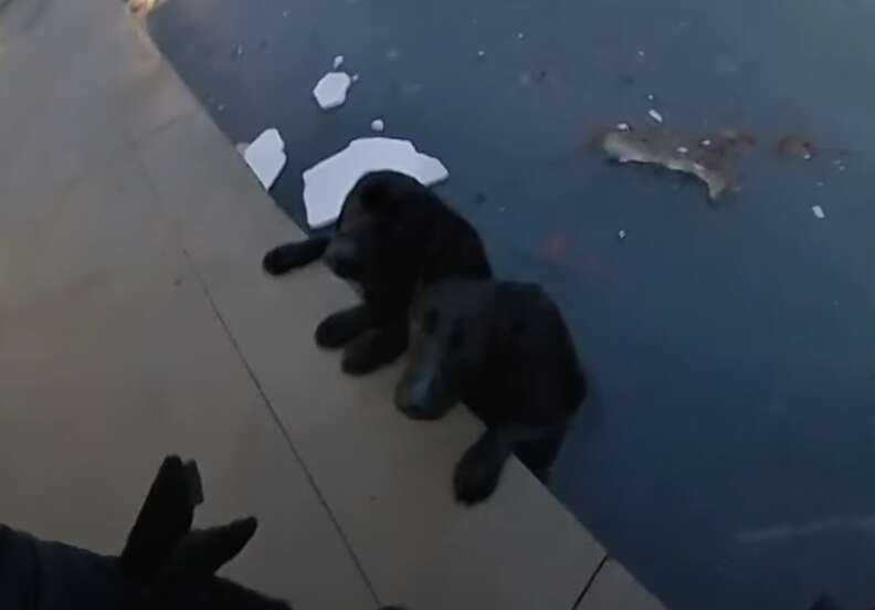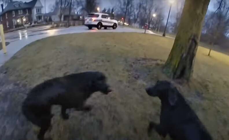 Les images de la caméra corporelle de Hullinger ont capturé ce qui s’est passé ensuite, alors que les deux chiens épuisés étaient sortis en sécurité.