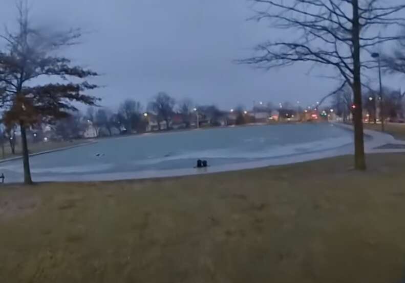 “Il a repéré deux labradors noirs qui étaient tombés à travers la glace dans la partie nord-est du réservoir”, écrit le département de police. “Les deux chiens semblaient incapables de se sortir de l’eau car leurs têtes et leurs pattes avant s’agrippaient au bord en béton entourant l’eau.”