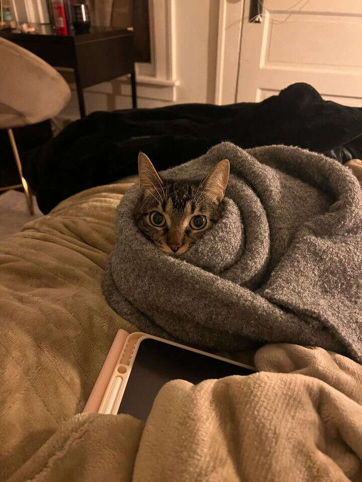 En fin de compte, Artemis a atterri sur une vidéo de canards jacassant dans un ruisseau – un choix très félin pour son divertissement auto-sélectionné.