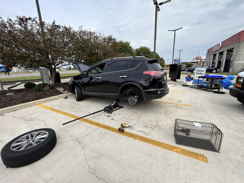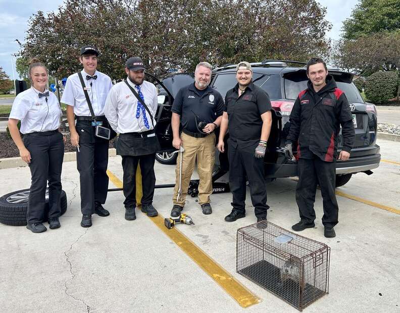 Peu de temps après, des employés d’un atelier mécanique Jiffy Lube voisin vinrent prêter main-forte à Stark dans cette situation inhabituelle. C’est alors qu’ils se retrouvèrent face à face avec le passager clandestin poilu.