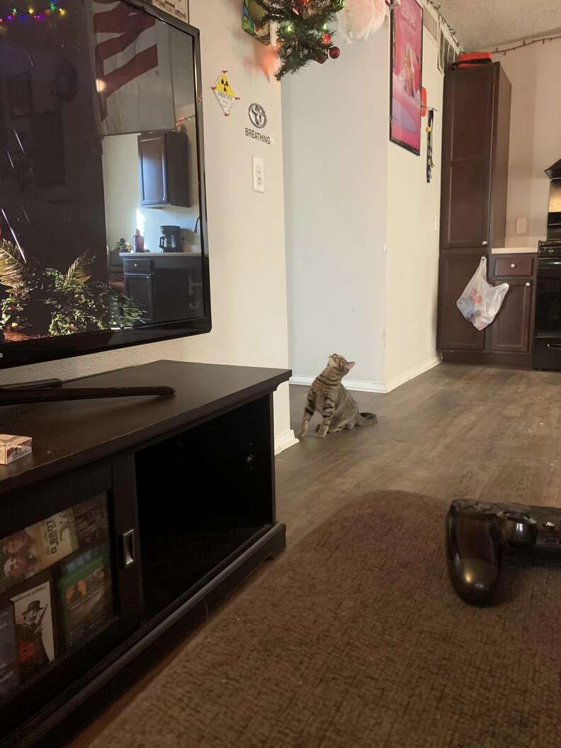 Face à cette situation, Wallace a décidé de rendre le sapin “résistant aux assauts félins” en le suspendant tête en bas au plafond, hors de portée de Kanye. Ce dernier pouvait toujours l’admirer, bien sûr. Mais pour Kanye, la simple contemplation ne suffisait pas.