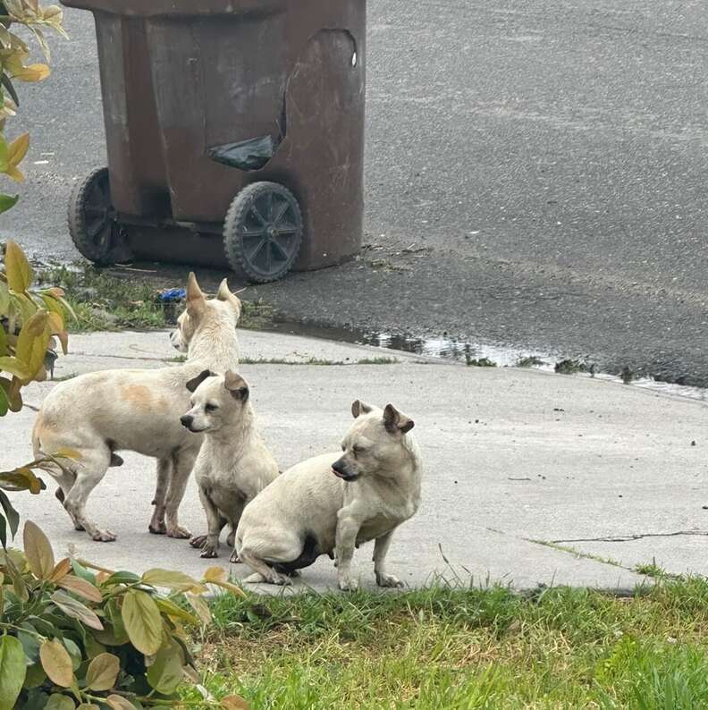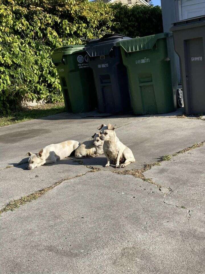Un Bon Samaritain a signalé avoir découvert non pas un, mais trois petits chiens abandonnés sur une propriété déserte à Compton, et ils refusaient de se quitter en attendant de l’aide.