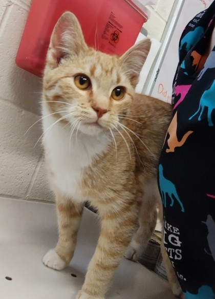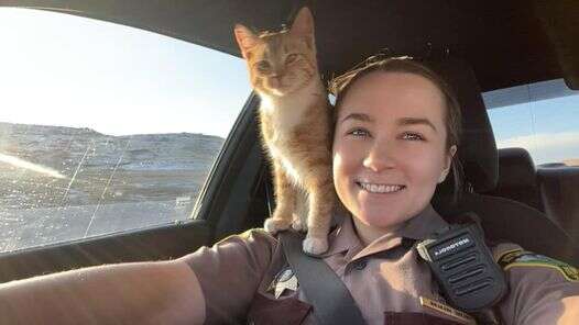“Alors que j’expliquais au conducteur la raison de l’arrêt, évidemment pour l’excès de vitesse, je sens quelque chose frotter contre ma jambe – ce n’est pas quelque chose que vous voulez sentir lorsque vous êtes au milieu de nulle part”, a déclaré Helkenn à NewsCenter1. “Et je regarde en bas et il y a un chat orange.”